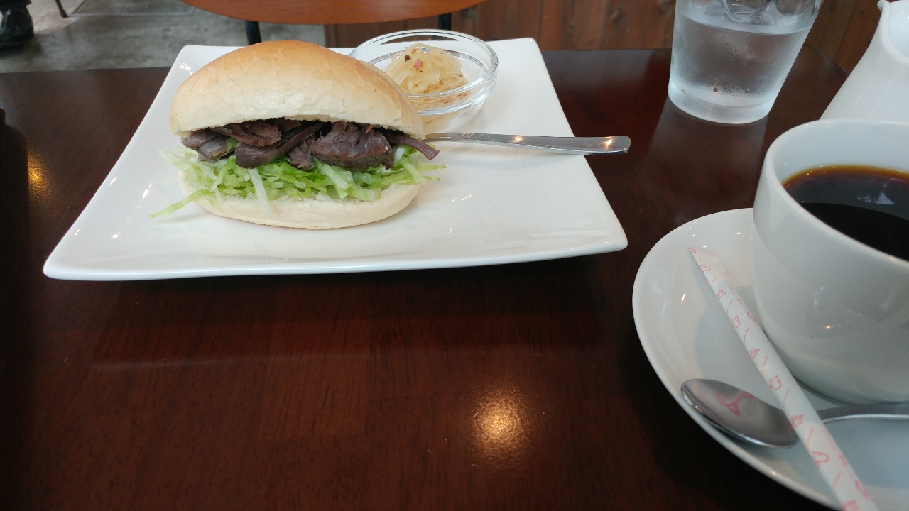 こんな場所にカフェがあったかなと思うと、平日は18時、今日のような休日は17時で閉店してしまうのだとか。道理で夜の散歩では気がつかなかったわけだ。コーヒーと自家製コンビーフのサンドイッチで遅い朝飯にする。