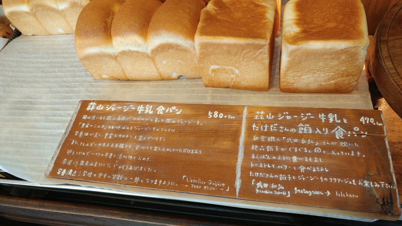 前の客につられて、写真の食パンを1斤買ってしまった。食パンは11時の開店時刻に合わせて焼き、それがなくなったら二回目を焼いて、二回目も売り切れたらその日は終わりらしい。焼きたてなので、パンから出た湯気がビニール袋に水滴となってついてしまい、それがカビの元になるから、帰宅したらもう一枚のビニール袋に移し替えるように、とのこと。