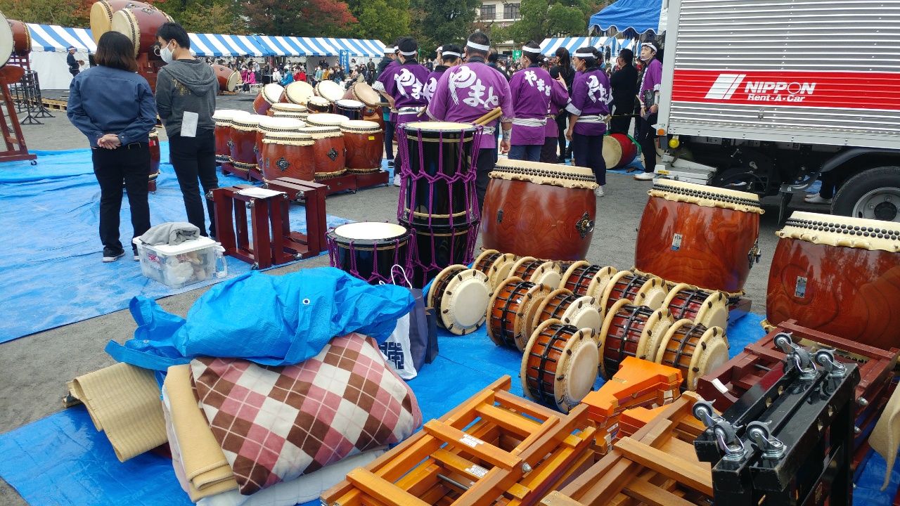 桜橋を渡っていると、太鼓の音が聞こえてくる。太鼓祭の会場に着くと、最後の一組の演奏というところまで進行していた。しかし演奏する側も聞きに来る側も、太鼓というのがこんなに人を集めるとはね。