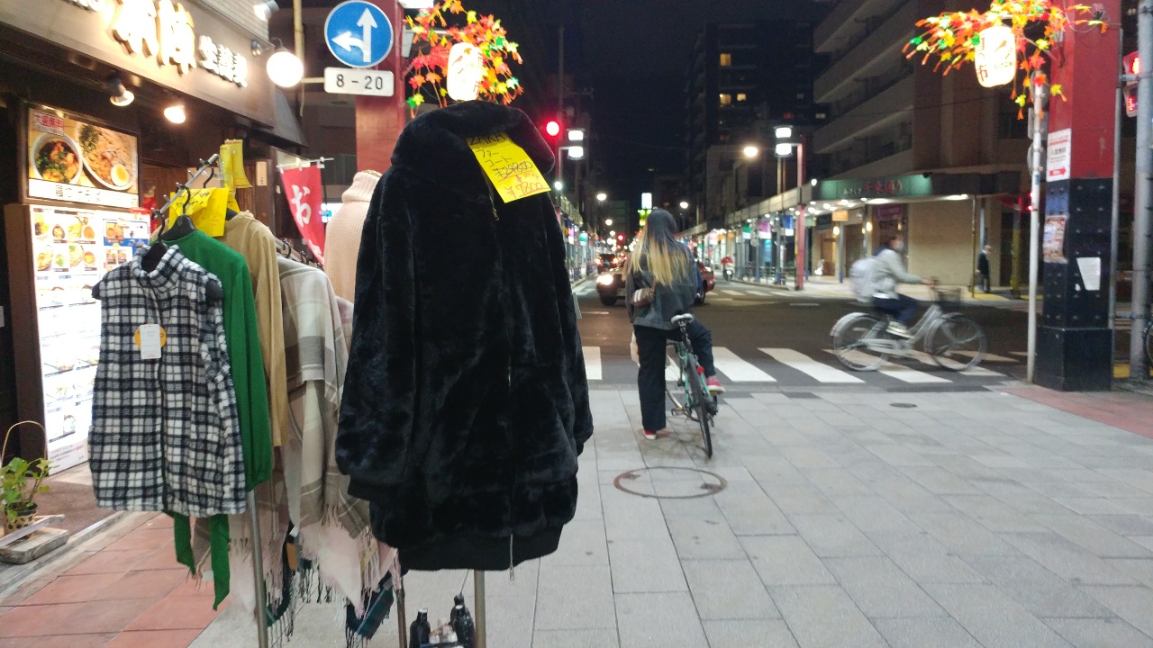 夜の散歩に。桜橋から山谷堀公園、千束通りといういつものコース。今日は国際通りに出て浅草近くまで行ってみる。