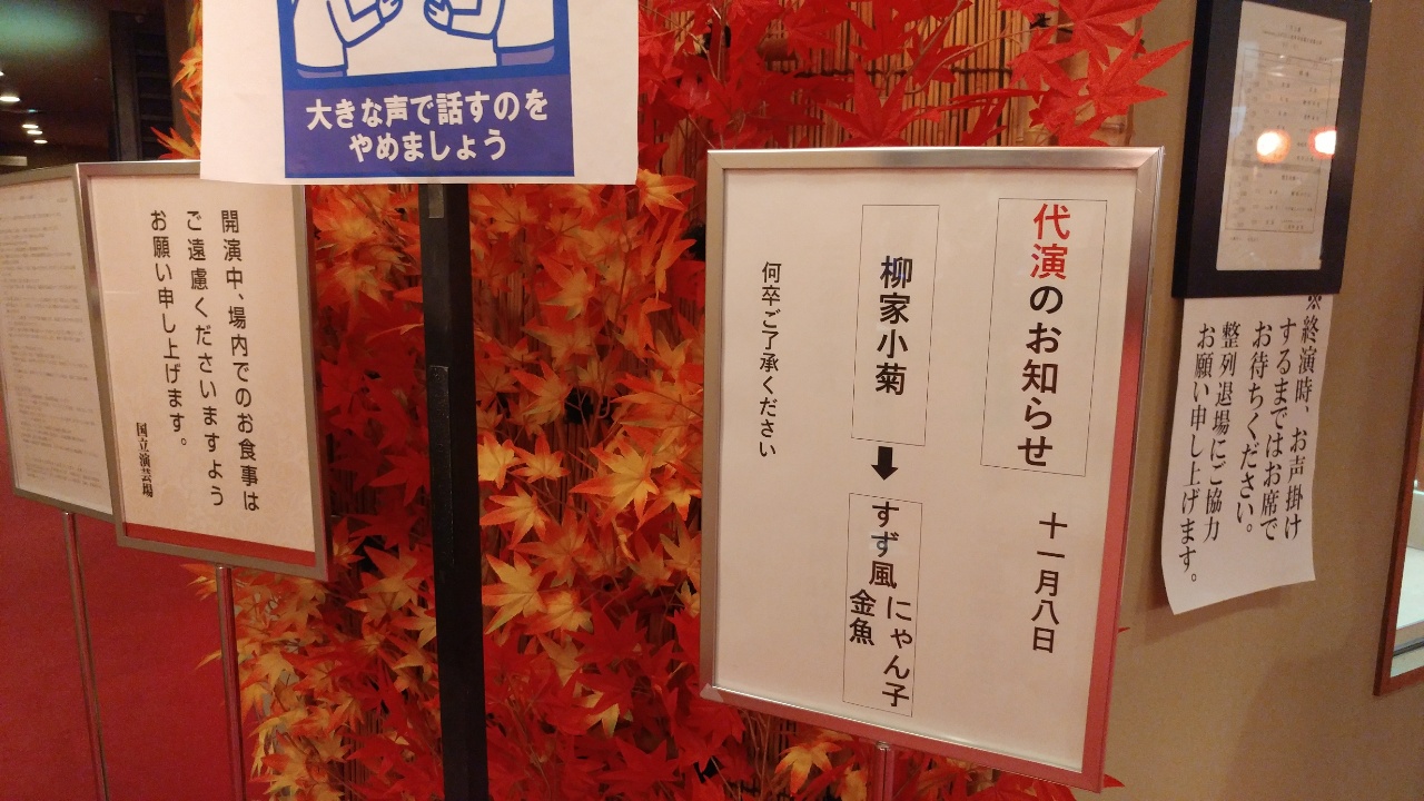 半蔵門へ。国立演芸場の11月上席、五代目金馬襲名披露興行に。