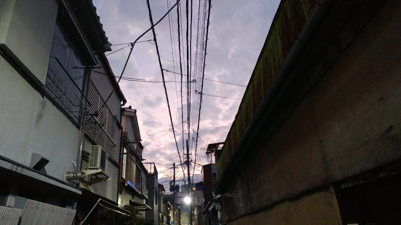 金美館通りに入って程なく左に折れて、歩いていると、合羽橋通りに出た。日が暮れて、ほとんどの店はすでに店を閉めている。西浅草から六区に。