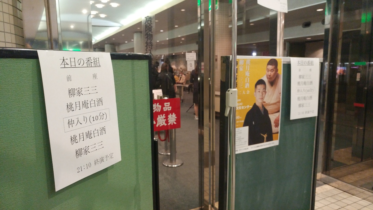 実は曳舟文化センターに来るのは初めて。立派なホールで、舞台の幅はそうでもないが、天井がずいぶん高い。これまでこのホールを落語会に使っているのは聞いたことがなかったが、興行主に見落とされていただけかも知れない。いい場所を見つけた。ところが、白酒さん曰く、このホールは来年から改修に入ってしばらく使えなくなるのだとか。