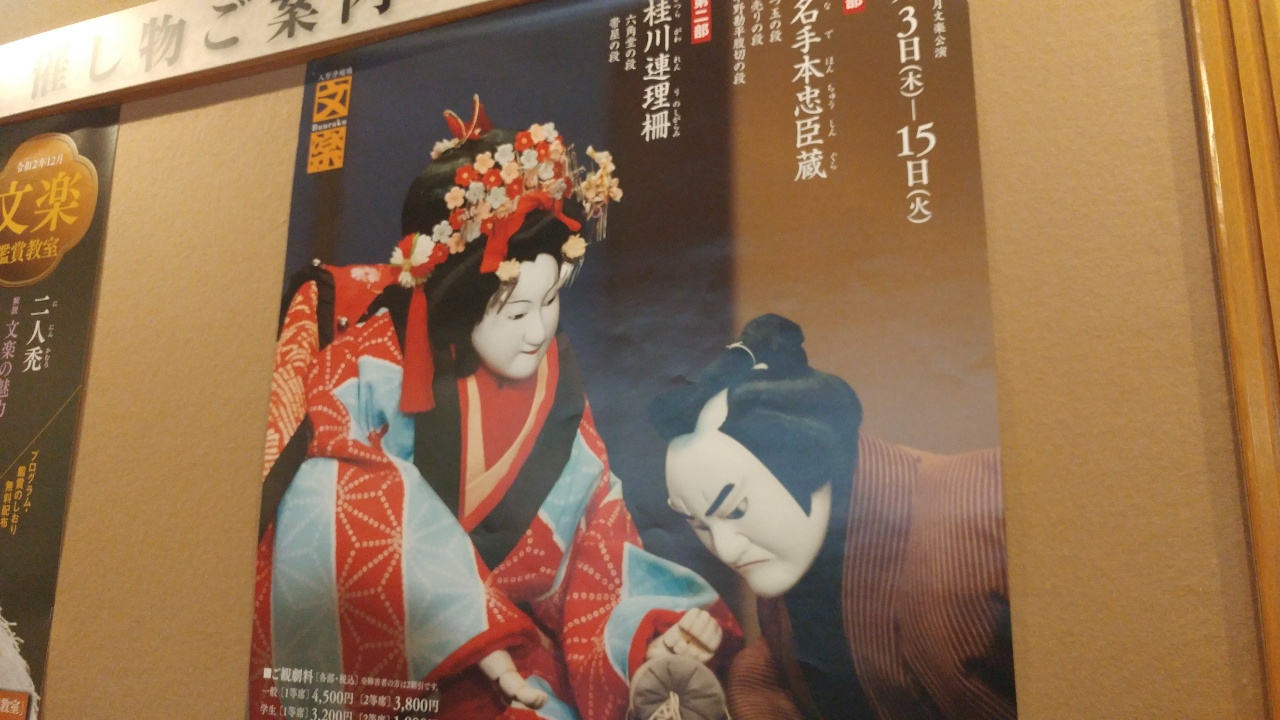 半蔵門へ。19時半からの国立劇場十二月文楽公演の第二部に。 演目は「桂川連理柵」の六角堂の段と帯屋の段。