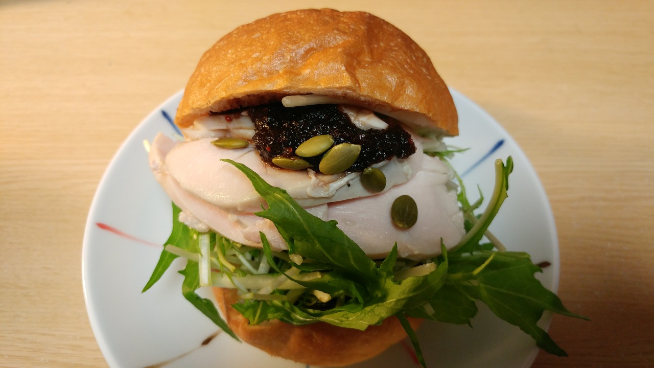 百花園近くのパン屋でハンバーガーを買ってきて昼飯にした。鶏肉にクランベリーソースがアクセントになってなかなか宜しい。