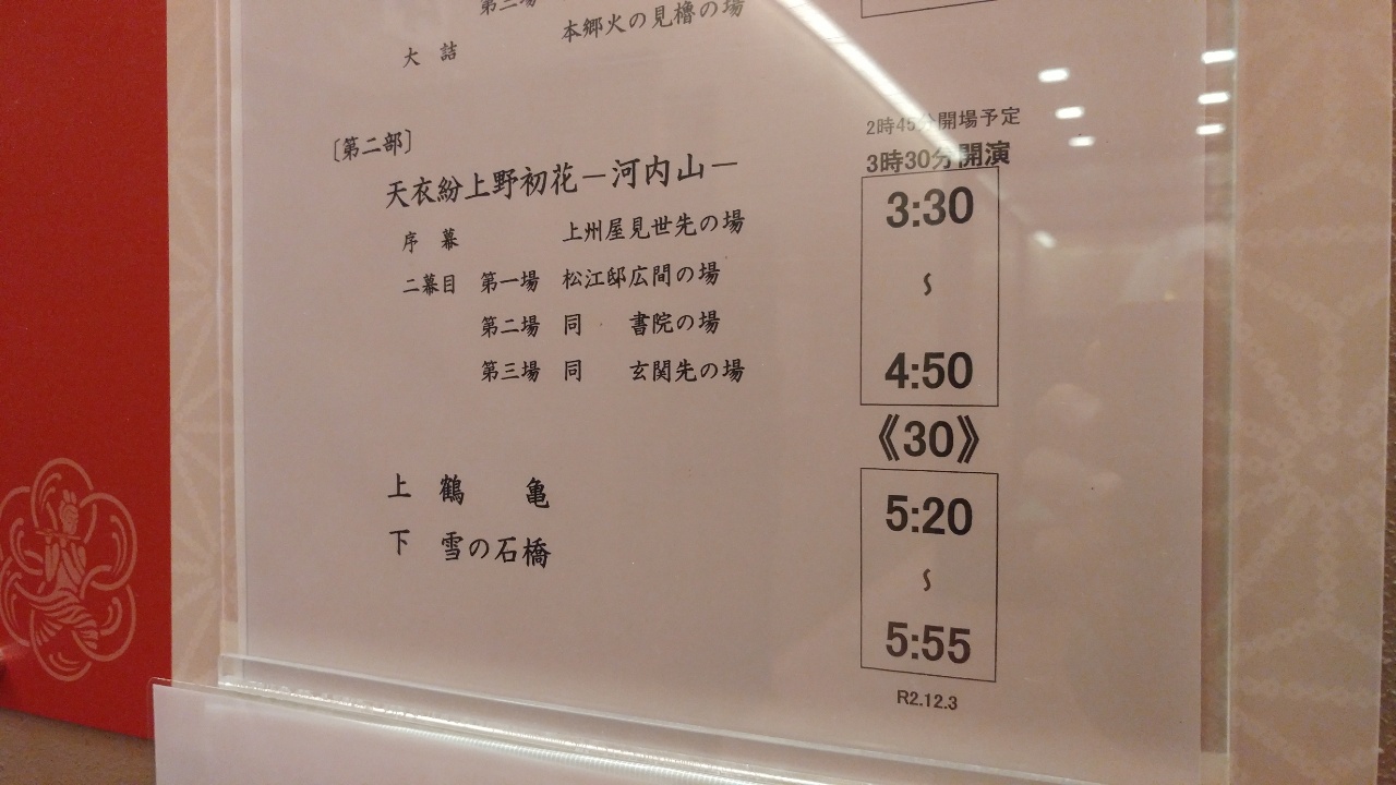 「天衣紛上野初花」は歌舞伎ファンには馴染みの演目ということだが、さあ、私は今まで見たことがあるかな。歌舞伎を見るようになってそれなりに経つが、定番の演目を案外見ていないのは、国立劇場の歌舞伎公演ばかり見ているからだ。ところが、このコロナ禍のために長時間の通しの上演が難しくなったせいもあるだろう、再開以後の国立劇場では、定番の演目から選んで上演してくれているようで有難い。