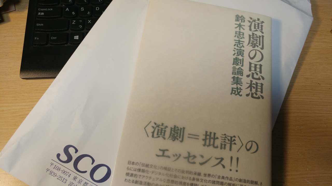 帰宅したらSCOTから鈴木忠志さんの本が届いていた。特に注文していないんだけどな。あるいは去年シアター・オリンピックスを見に行った客全員に送っているのだろうか。特に送り状も付いていないので、趣旨がわからない。太っ腹な演劇祭なのだと思っておく。