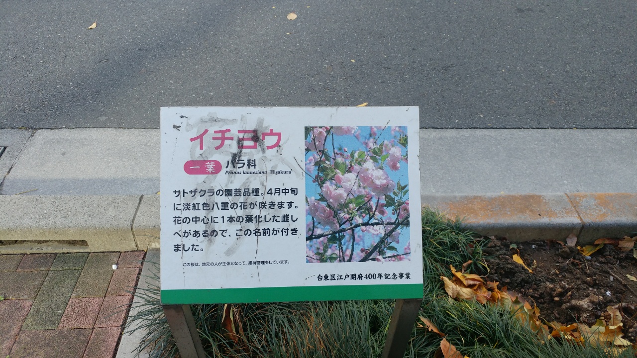 そうか、この通りの名前「一葉桜・小松橋通り」は、一葉桜が植えられているところから来ているのか。今年の桜の花の時期が終わってからこの通りを歩くようになったので、迂闊にも気がつかなかった。