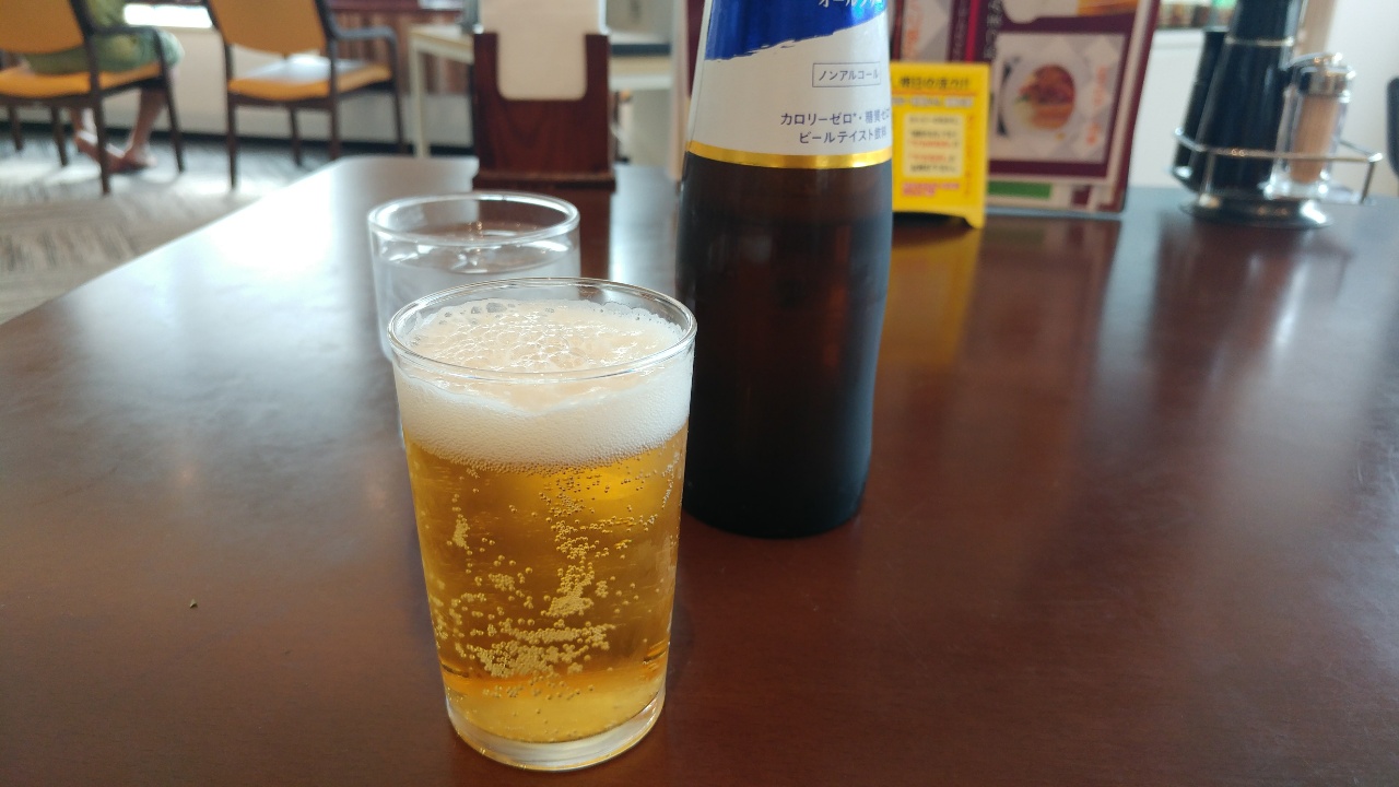 昼間からビール、ではなくオールフリー。氷なしでコップに注ぐと、ビールと見分けはつかないね。