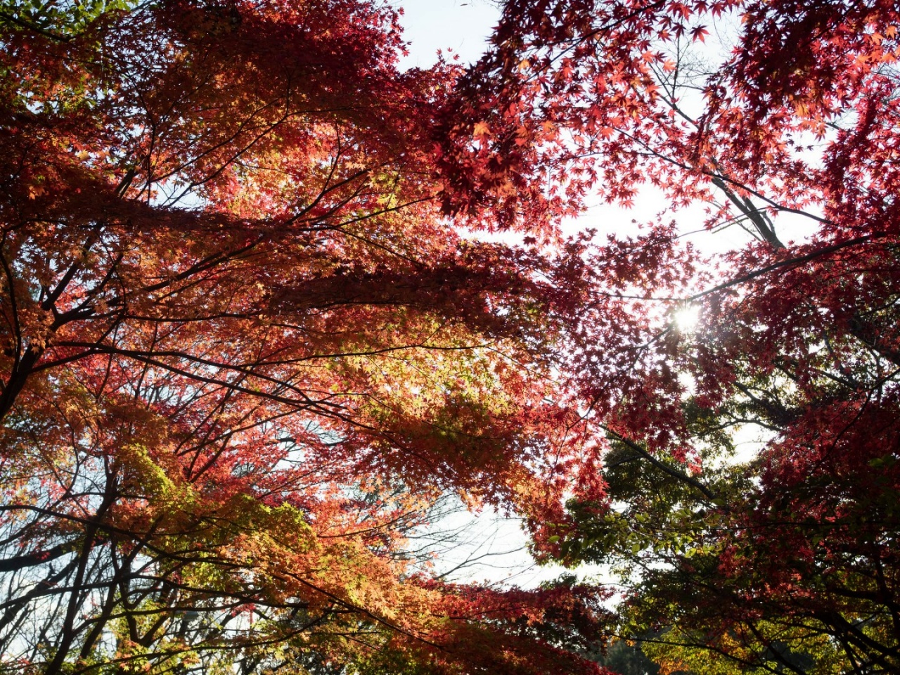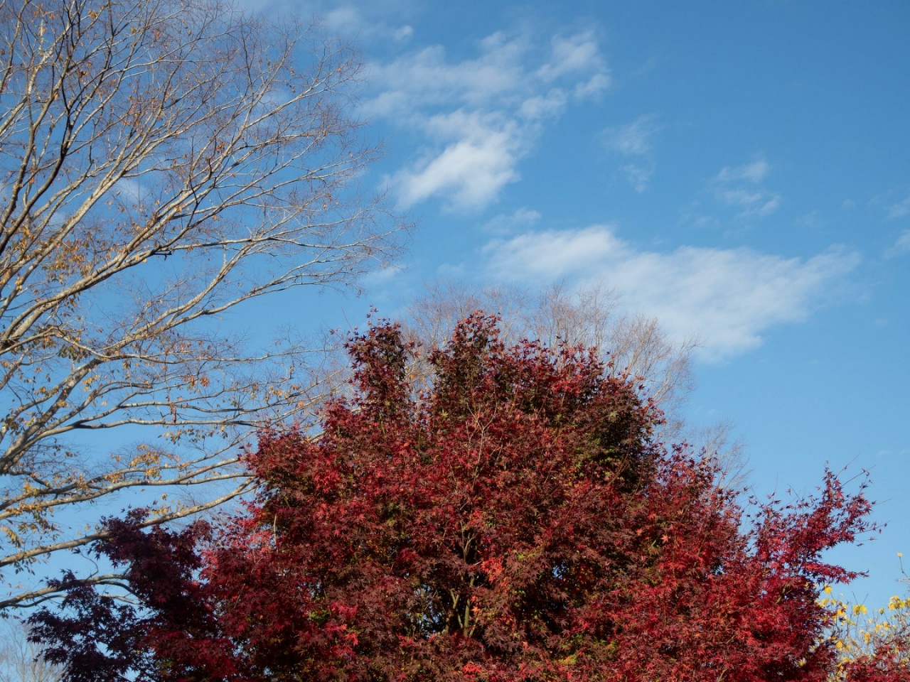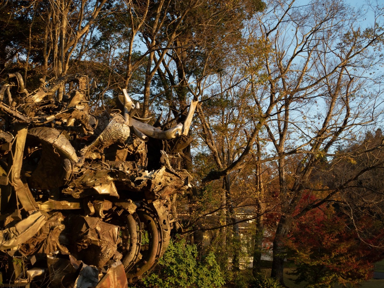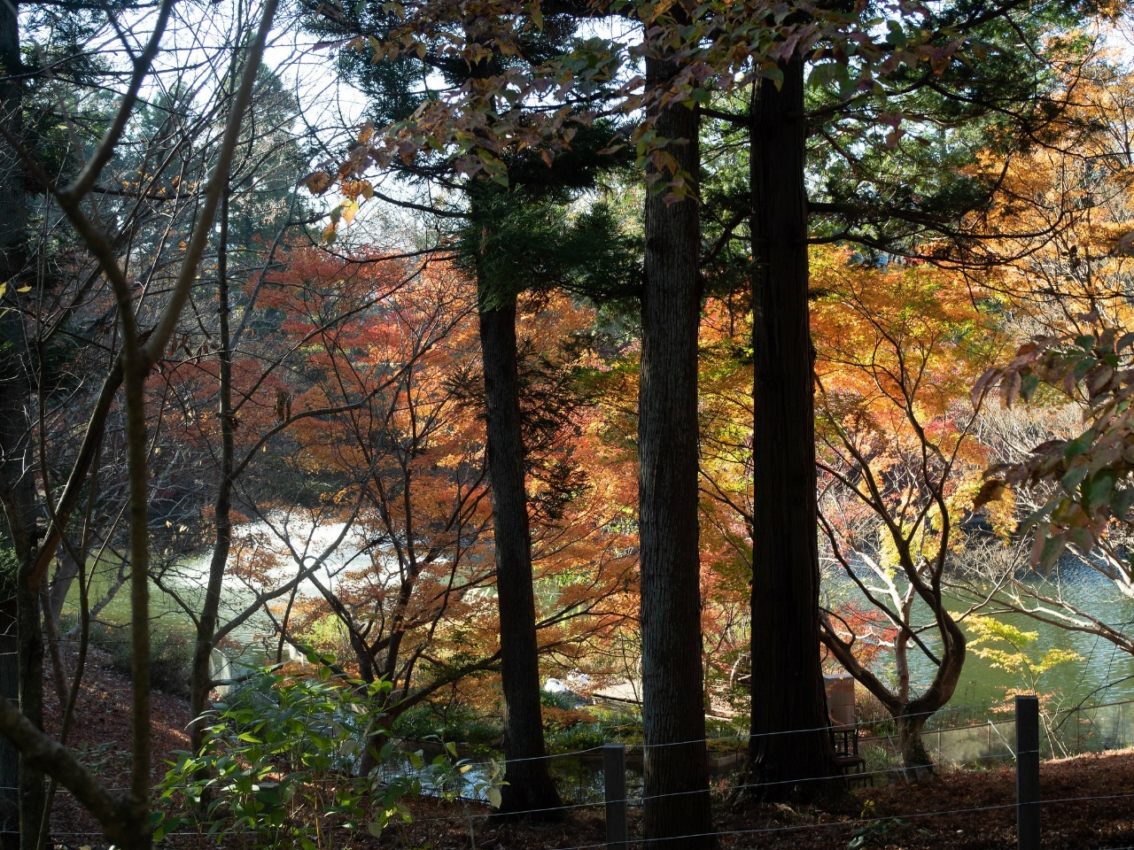 現在開催中の「ふたつのまどか」展が目当てではあるけれど、この季節だから紅葉を見たいという心積もりもあった。紅葉した木は庭園にそれほど多くはないが、何本かの木はやはり美しい。少し時期が遅いくらいだった。