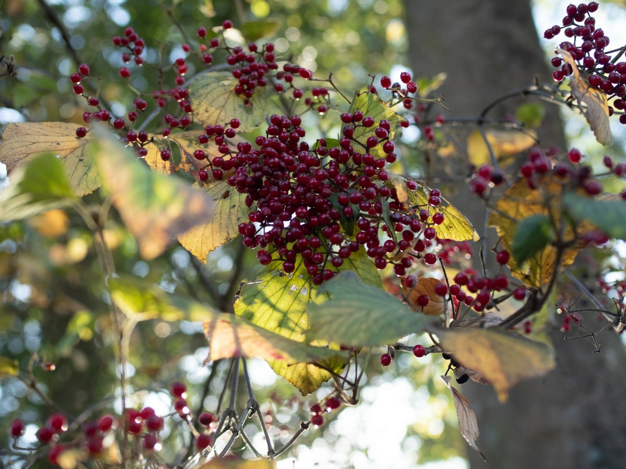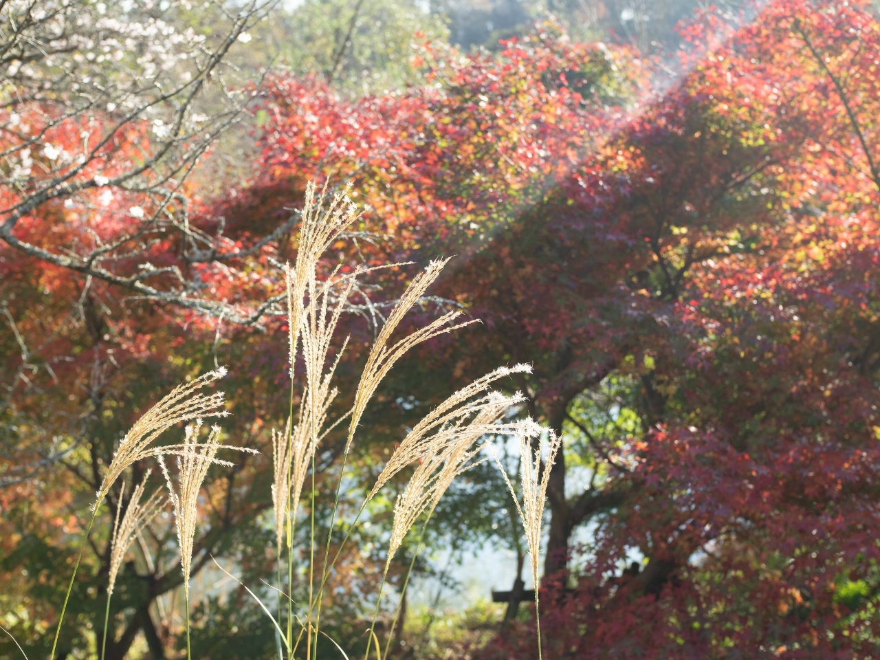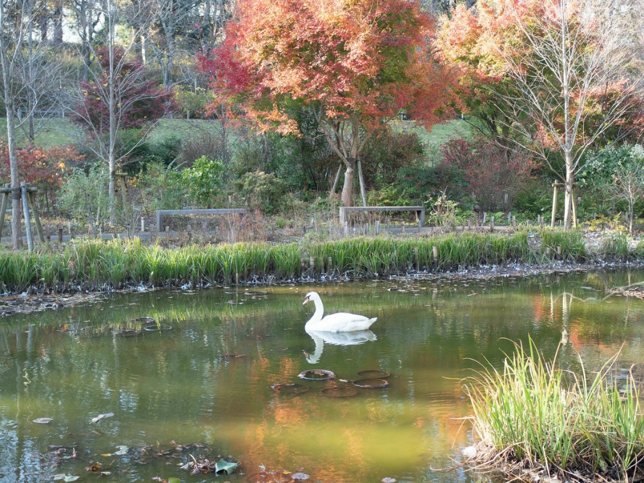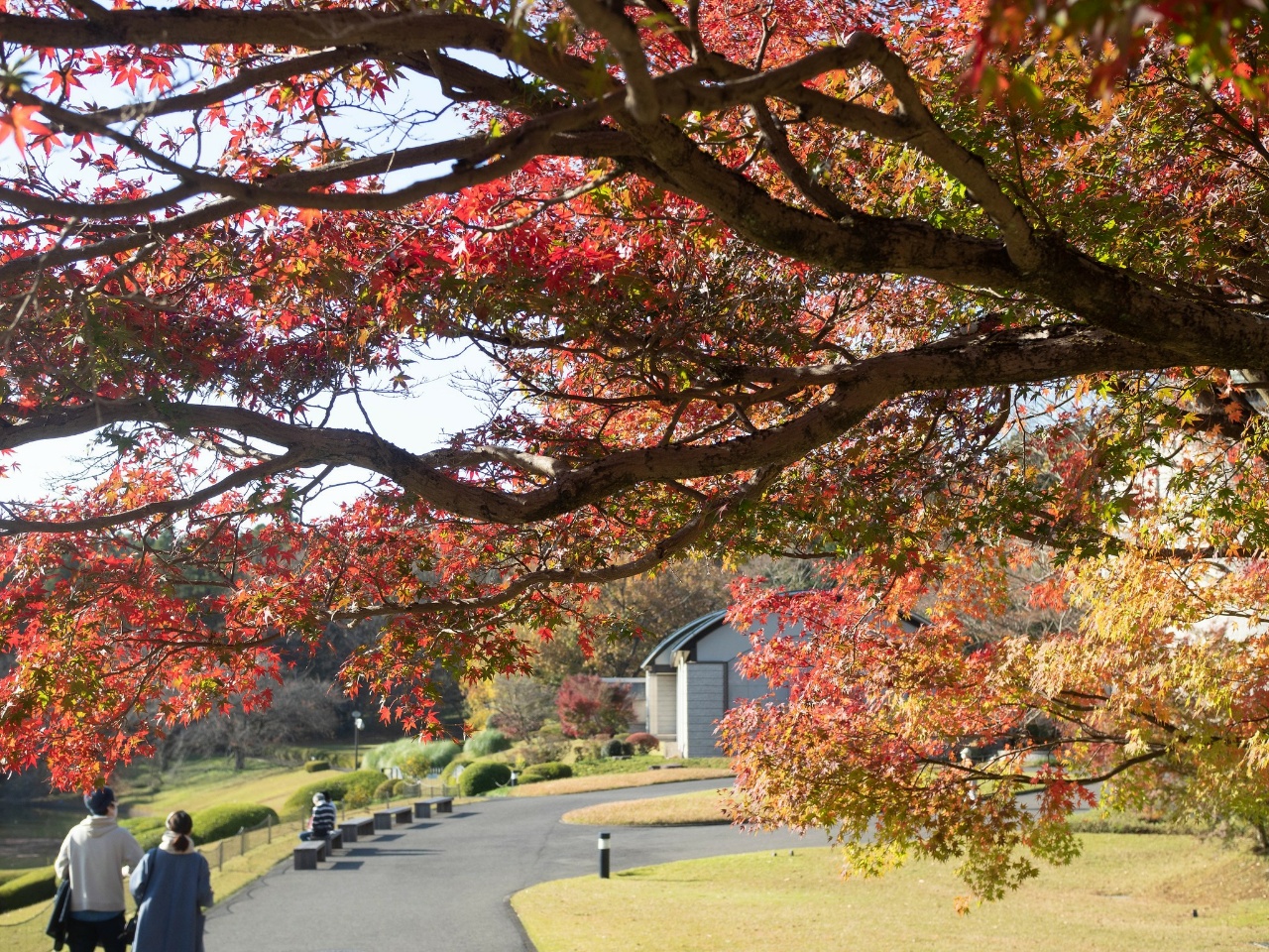 現在開催中の「ふたつのまどか」展が目当てではあるけれど、この季節だから紅葉を見たいという心積もりもあった。紅葉した木は庭園にそれほど多くはないが、何本かの木はやはり美しい。少し時期が遅いくらいだった。