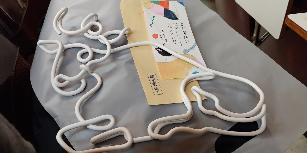 このコンビは、私は初めて見たように思う。客が少ないのをいいことに、針金細工の撫で牛をいただいた。