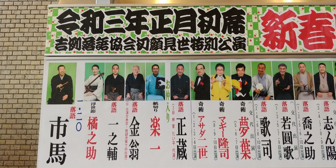 場内に入ると、空席が残っているどころか、開演の11時の時点で客席に座っていたのは、ざっと10名程度ではなかったか。鈴本の正月の興行でこれほど客入りが薄いのは、やはり異例なようで、何人かの演者がそのことに触れていた。さすが緊急事態である。